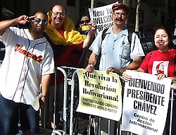 Manifestantes pro-chavistas llegaron desde las 9:00am a las afueras de la ONU para expresar su apoyo por Chávez y la revolución bolivariana.